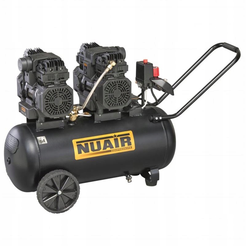 Model Nuair SILTEK TB 50 D z dwoma wyjątkowo cichymi agregatami. Nadaje się do bardziej intensywnego użytkowania i większego dopływu sprężonego powietrza, aby zapewnić długą ciągłość pracy. Konstrukcja uchwytu i podwozia zapewnia wygodną obsługę i stabilność. Przełącznik ciśnienia umożliwia pracę w trybie pracy automatycznej.
